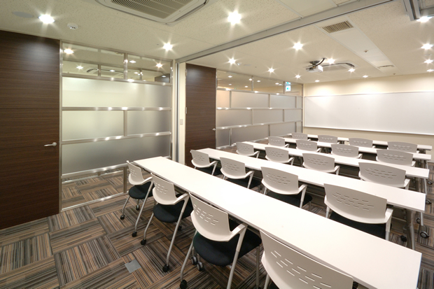会議室Aと会議室Bは間を仕切っているパーティションを外せば、20人対応の会議室としても利用可能です。レンタルオフィス併設の会議室ではなかなかない広さです。